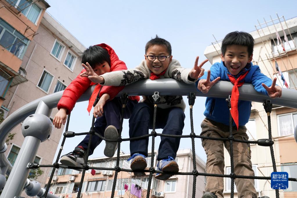 1月18日,在上海市徐汇区凌云街道凌云新村社区,放假的孩子们在一起玩耍。新华社记者 刘颖 摄