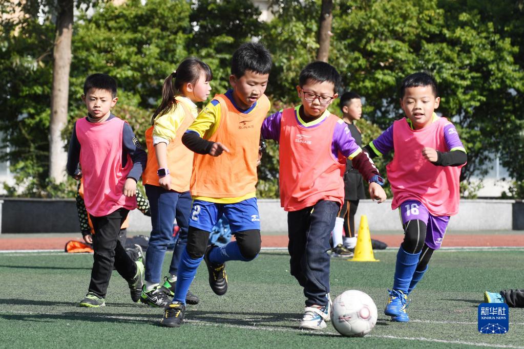 1月18日,贵州省仁怀市实验小学的学生在进行足球分组对抗赛。新华社发(陈勇摄)