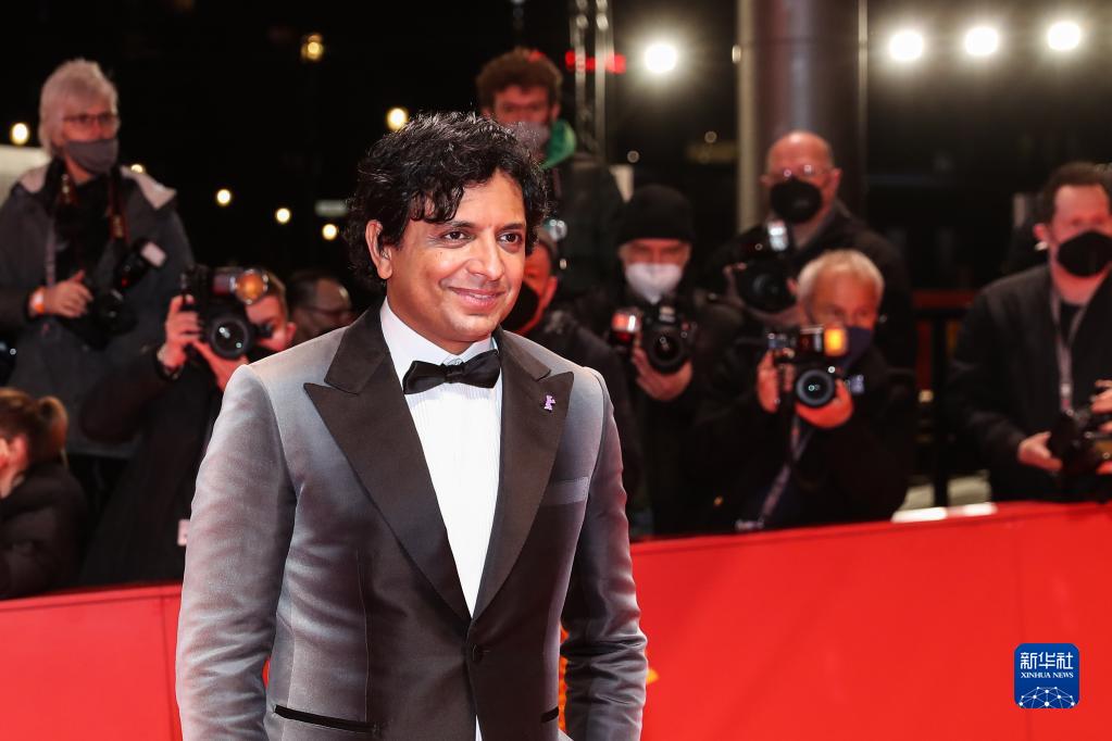 2月10日,在德国柏林,柏林国际电影节主竞赛单元评审团主席奈特·沙马兰亮相开幕式红毯。