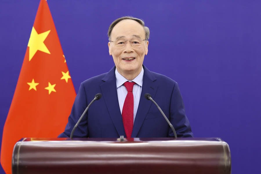2月11日,国家副主席王岐山在“一个海洋”峰会高级别会议上发表视频致辞。