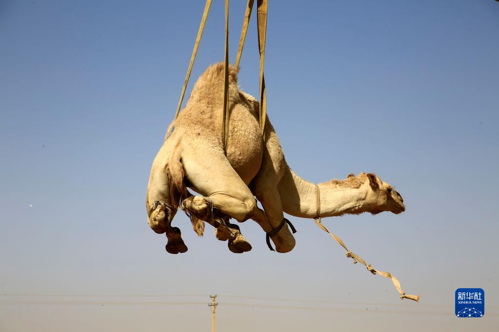 这是2月5日在苏丹喀土穆拍摄的准备出口的骆驼。