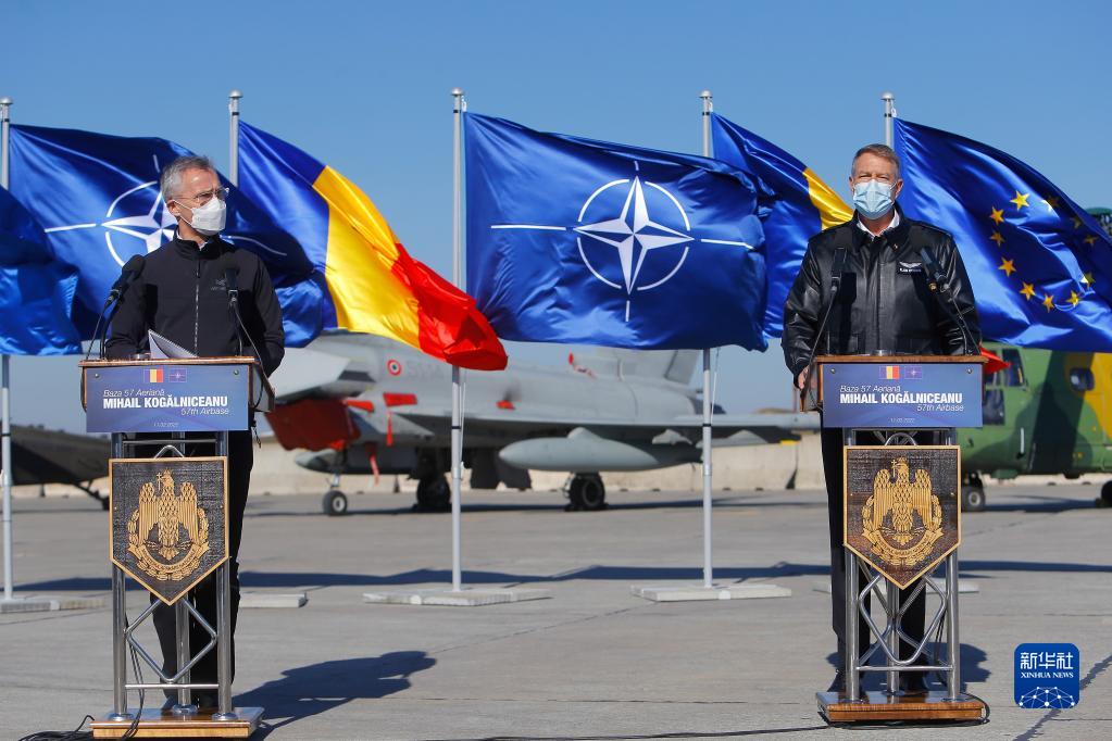 当日,罗马尼亚总统约翰尼斯与北约秘书长斯托尔滕贝格一同视察罗东部米哈伊尔-科格尔尼恰努军事基地。