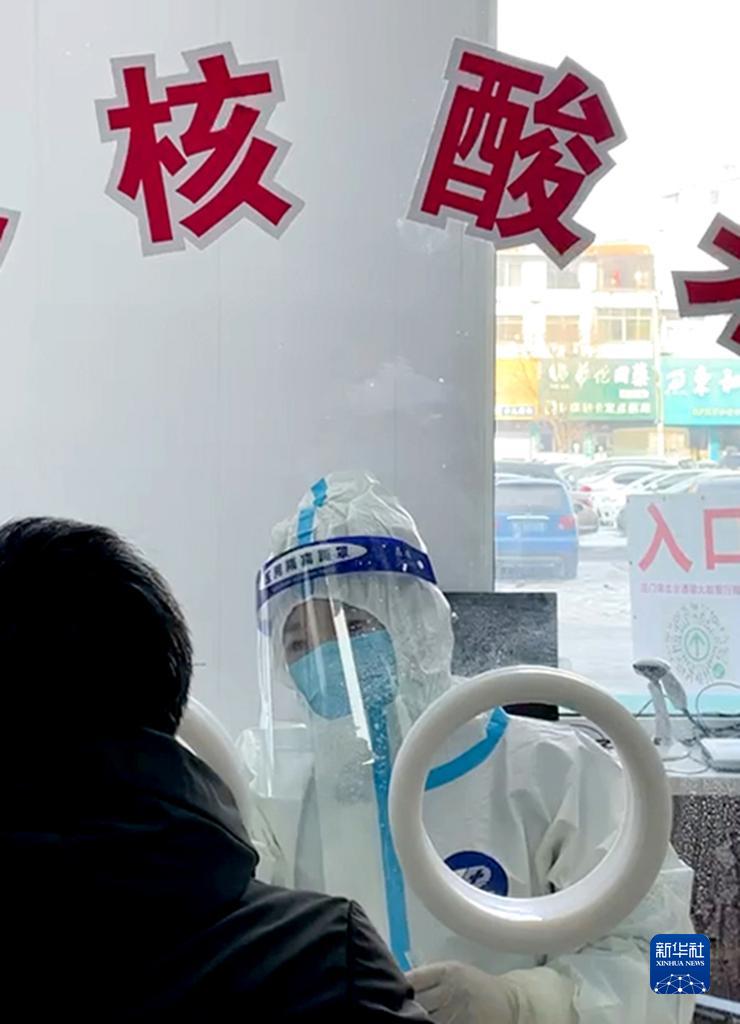 2月11日,市民在辽宁省绥中县医院进行核酸采样(视频截图)。
