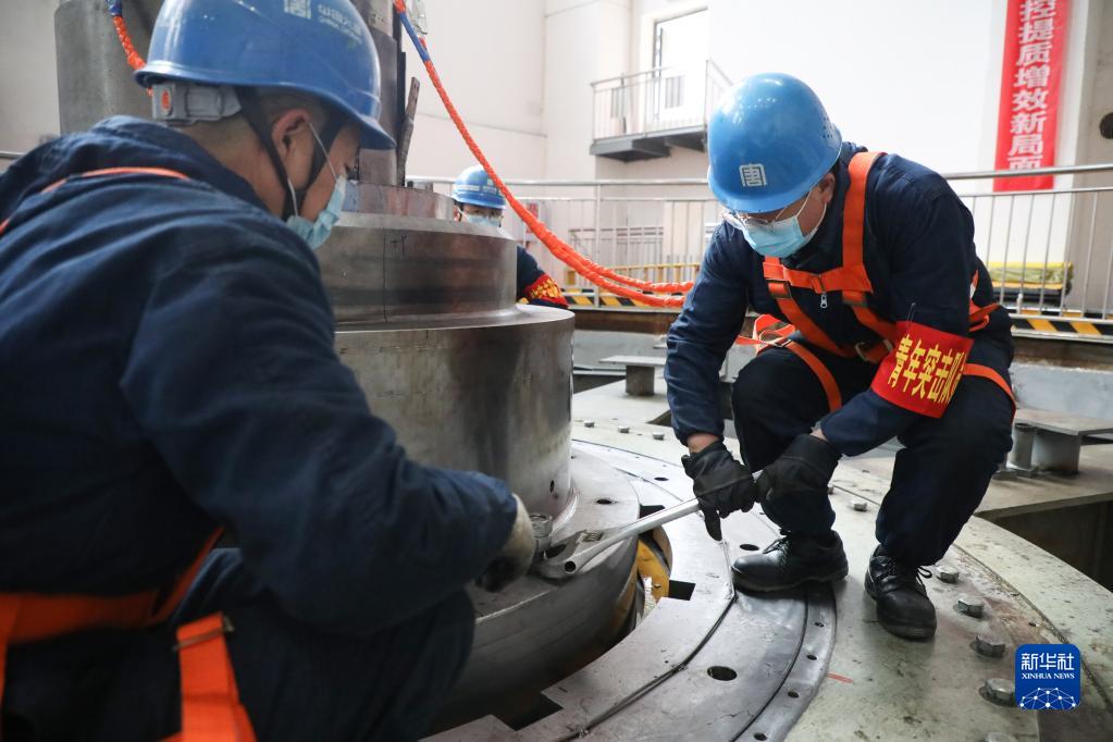 2月12日,在甘肃省陇南市文县,大唐苗家坝水电站工作人员在进行机组检修。