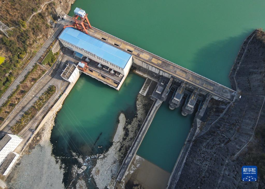 这是2月11日在甘肃省陇南市文县中庙镇境内拍摄的大唐麒麟寺水电站库区景色(无人机照片)。