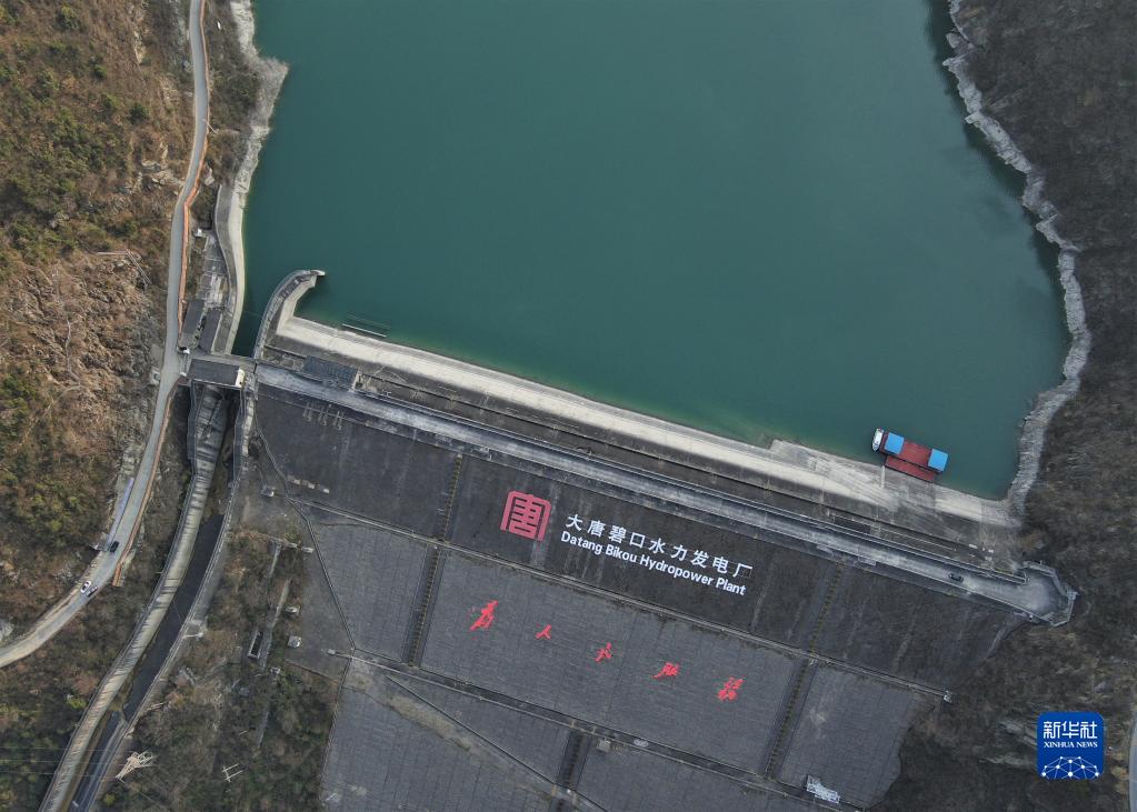 这是2月11日在甘肃省陇南市文县碧口镇拍摄的大唐碧口水电站库区景色(无人机照片)。