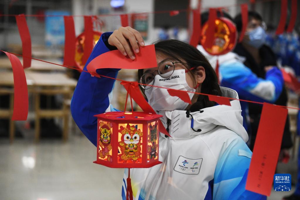 2月15日,北京理工大学为在校冬奥志愿者举办庆祝元宵节活动。在北京理工大学中关村校区,冬奥志愿者猜灯谜。