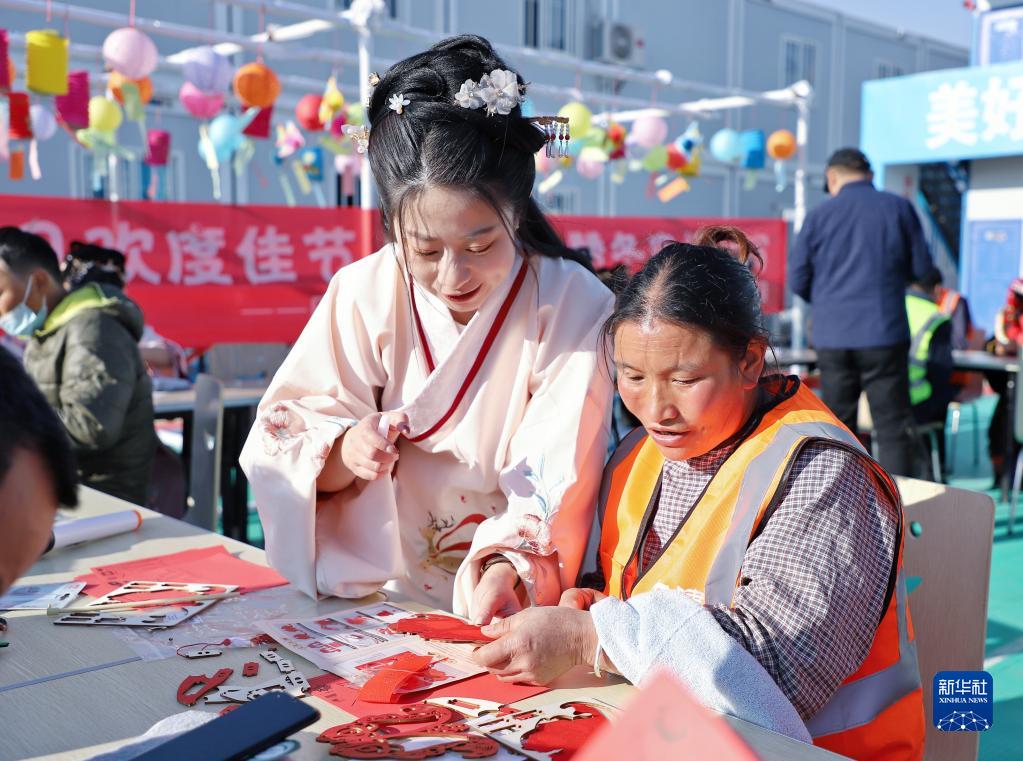 2月14日,中建七局西南公司云南分公司斗南花卉小镇项目部的工人和管理人员一起做剪纸,共迎元宵佳节。