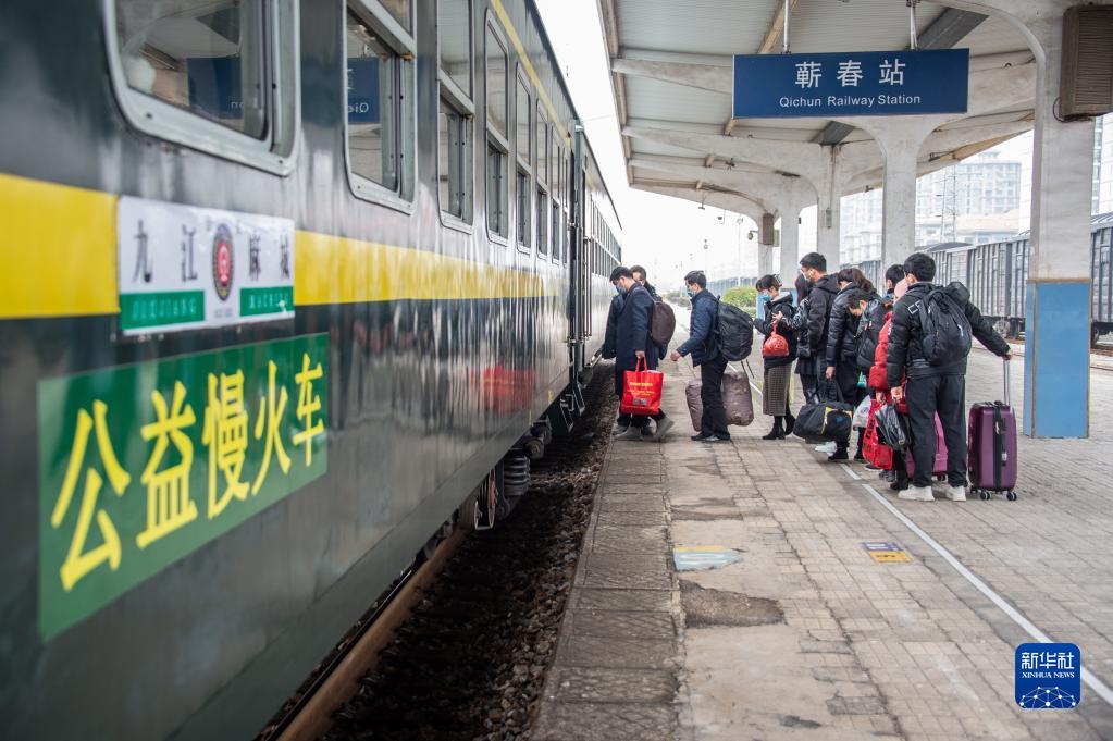 元宵节清晨,一列绿皮火车迎着太阳升起的方向缓缓行驶在大别山区。从湖北麻城开往江西九江的这趟公益“慢火车”,已在这条线路上运行二十多年。