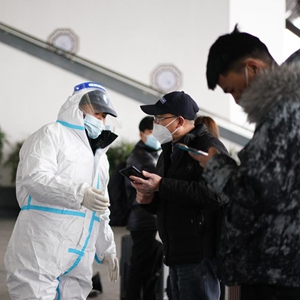 2月16日,在苏州工业园区星湾社区群星苑小区,工作人员在对外出车辆进行查验。新华社记者 季春鹏 摄