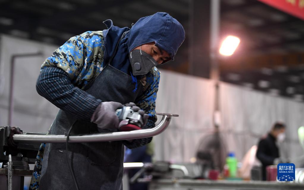 2月16日,工作人员在汊河轨道交通装备产业园的一家轨道交通装备企业生产线上忙碌。
