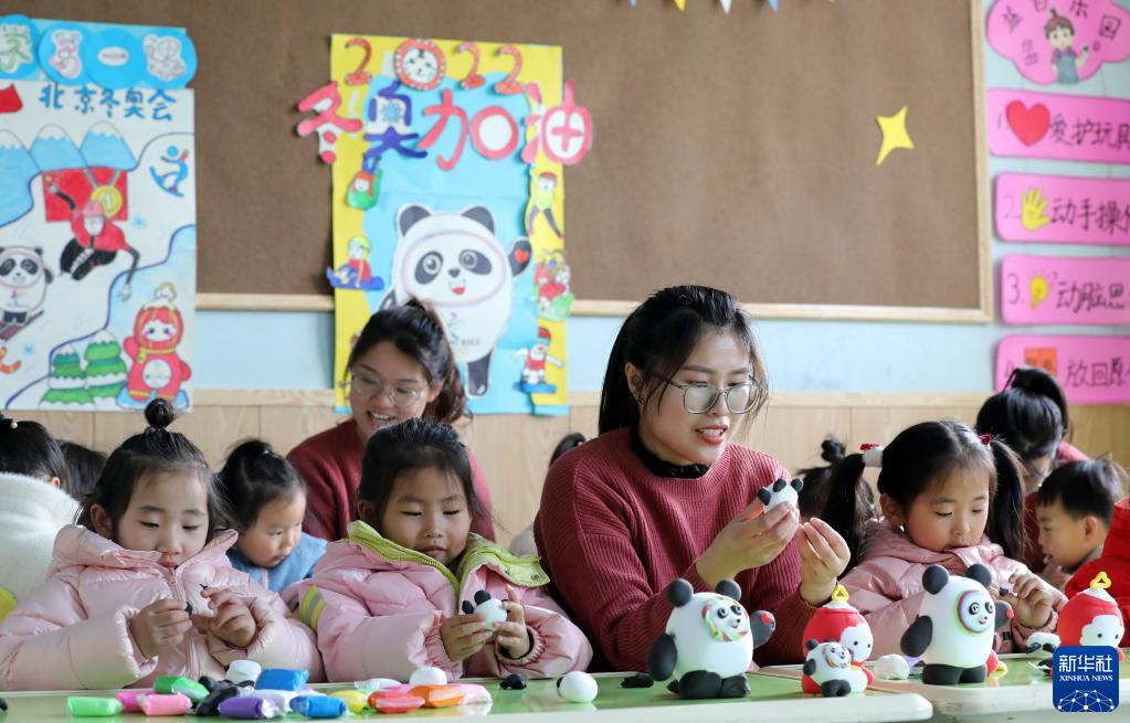 2月17日,山东省临沂市郯城县郯城街道官塘幼儿园开展以“我为冬奥加油”为主题的开学第一课活动。