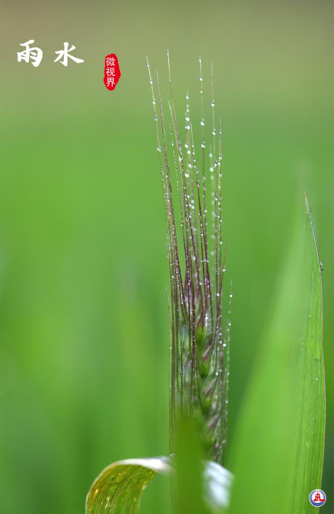 2月12日,在贵州省丹寨县龙泉镇高要村,雨水凝结在麦穗上。