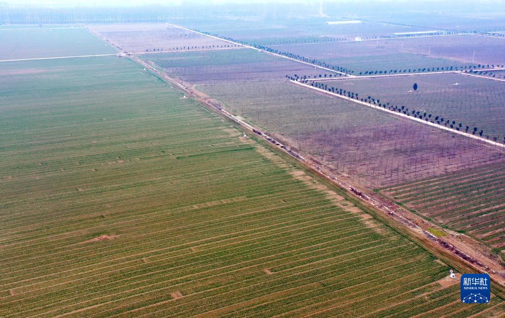 这是在河南省新乡市封丘县李庄镇竹岗村附近拍摄的农田,灌井遍布其中(2月16日摄,无人机照片)。