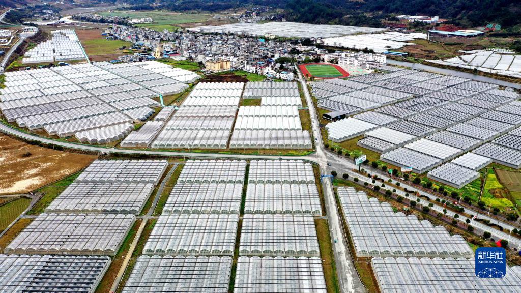 这是贵州省榕江县车江坝区设施大棚蔬菜种植区(2月18日摄,无人机照片)。