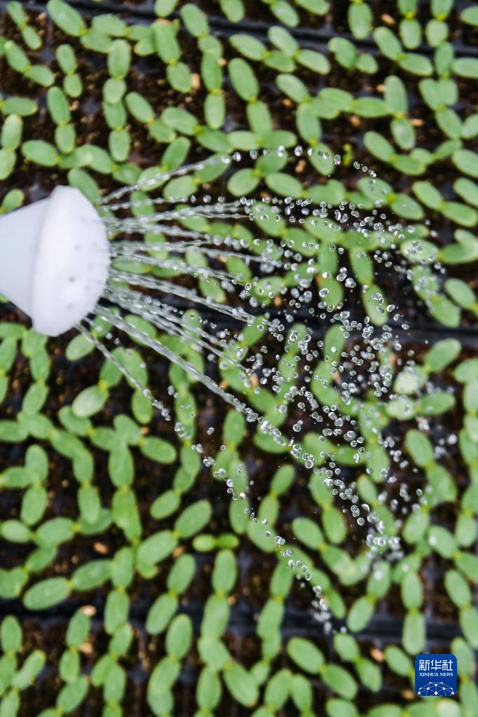 2月22日,种植户在位于织里镇的伟祥生态园育苗大棚里给西瓜苗浇水。