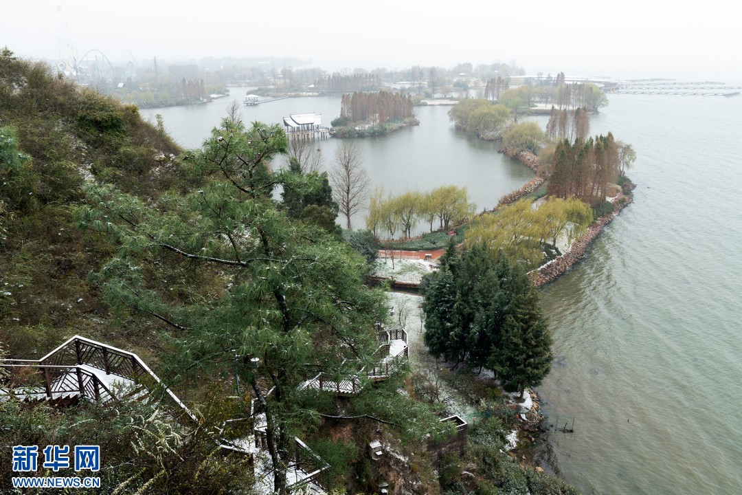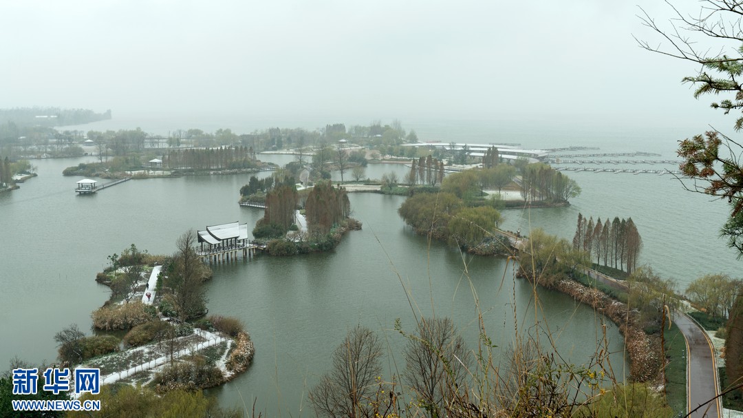 2022年雨水节气过后,有春城美誉的云南昆明飘起了纷纷扬扬的雪花,这是滇池湿地披上银装景象。新华网发(胡广水 摄)