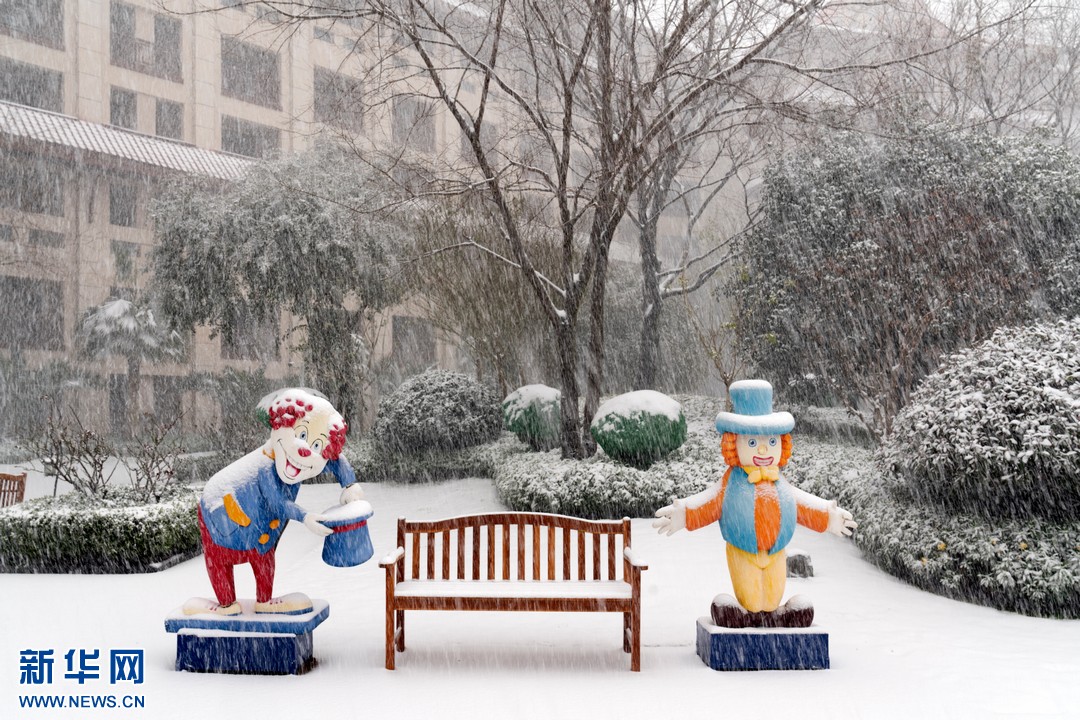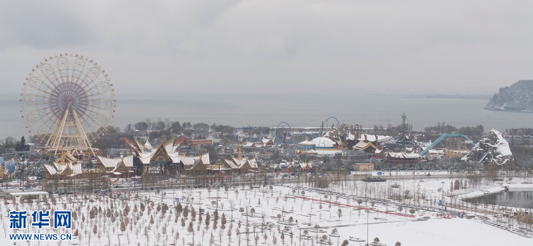 2022年雨水节气过后,有春城美誉的云南昆明飘起了纷纷扬扬的雪花。这是昆明古滇名城欢乐世界银装素裹,分外妖娆。新华网发(胡广水 摄)