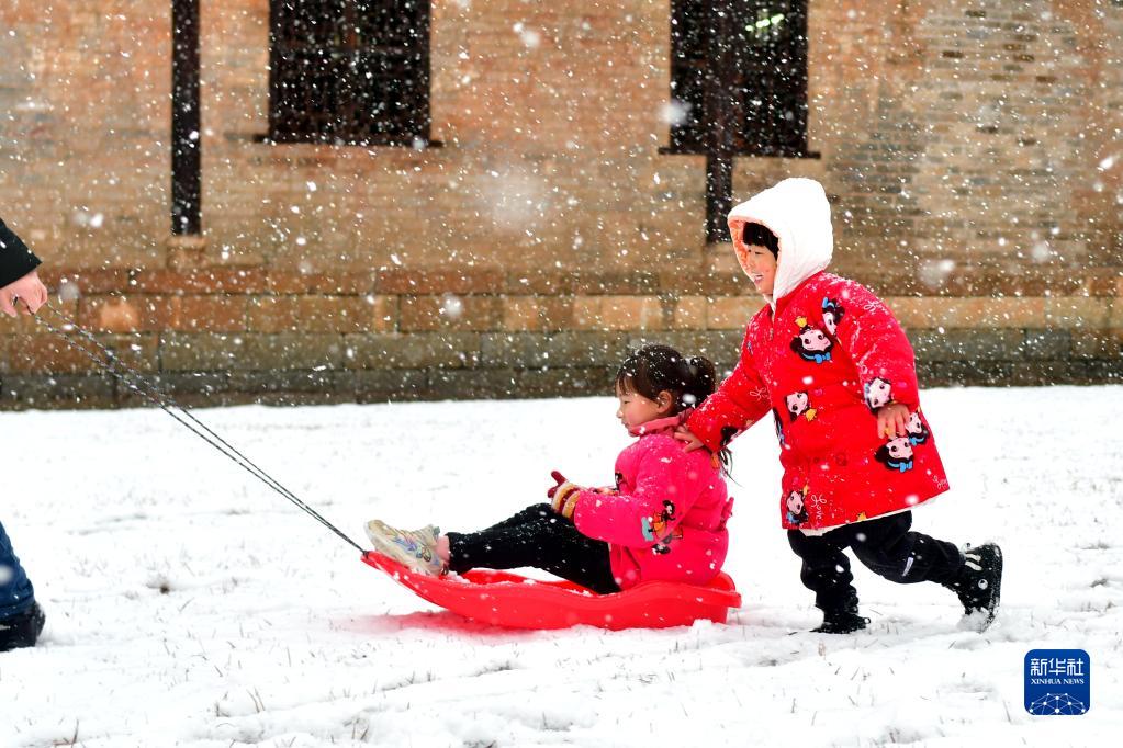 2月22日,在湖南省娄底市双峰县荷叶镇,小朋友在雪中玩耍。