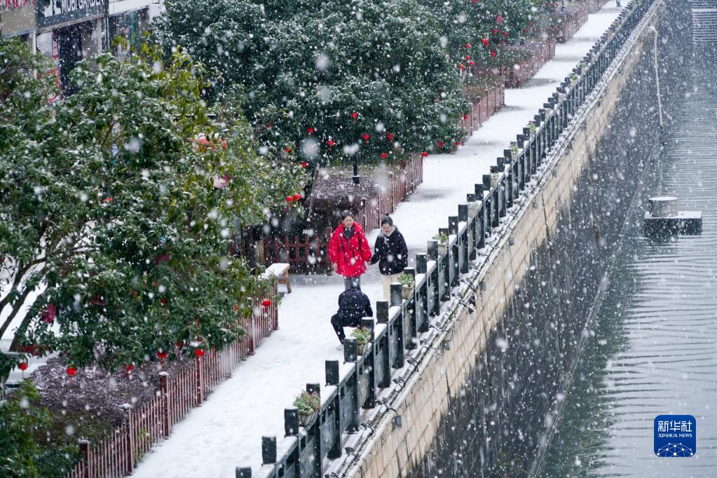 2月22日,在湖南省怀化市通道侗族自治县,市民冒雪出行。
