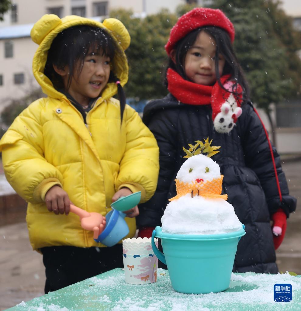 2月22日,在云南省昆明市西山区,小朋友在雪中玩耍。