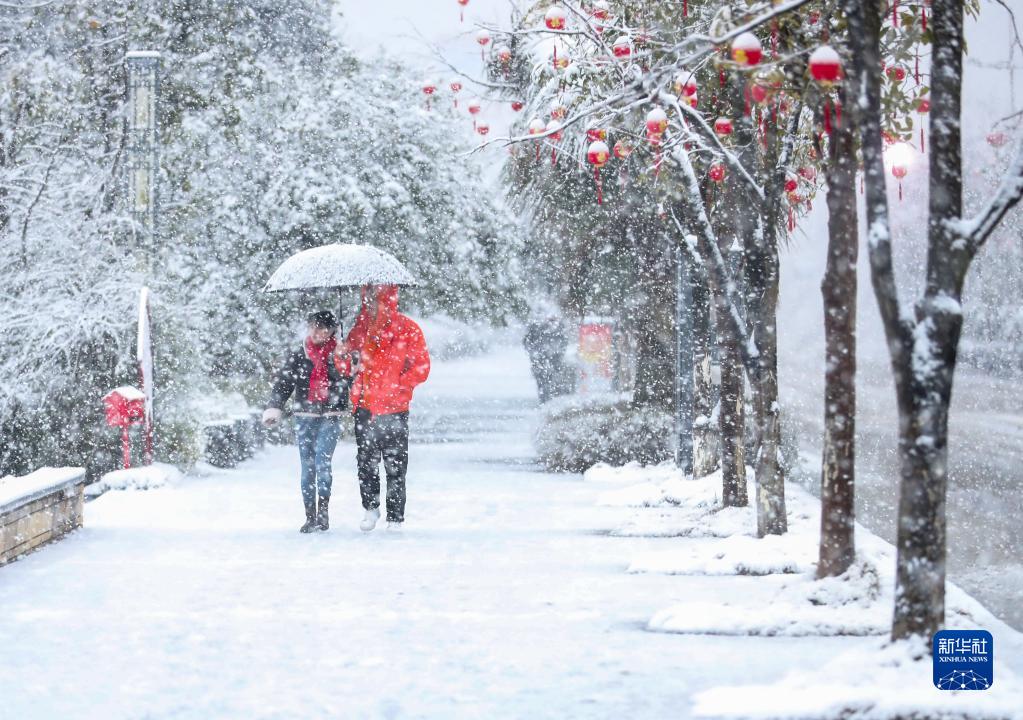 2月22日,在贵州省铜仁市玉屏侗族自治县,市民冒雪出行。
