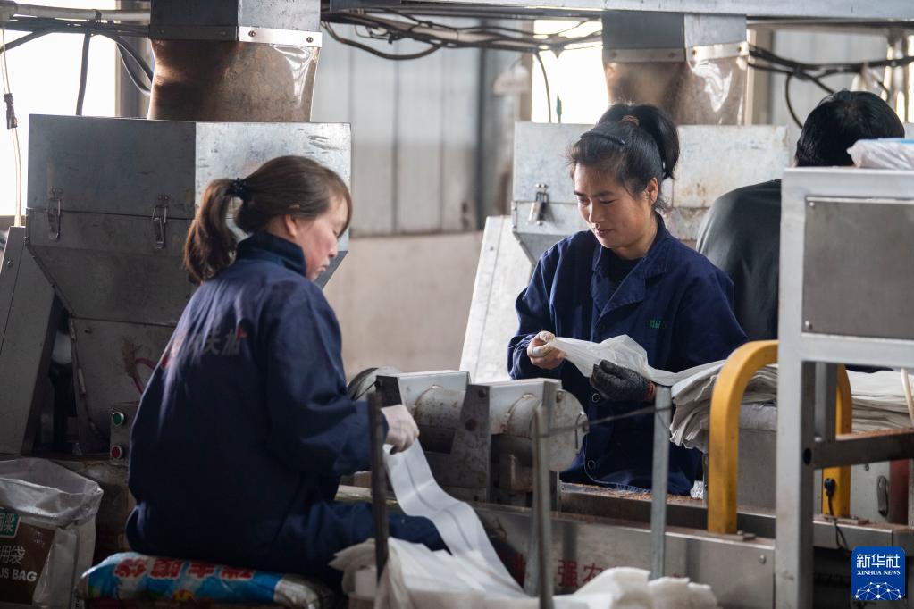 2月23日,工作人员在万荣县香菇产业园内加工菌棒。