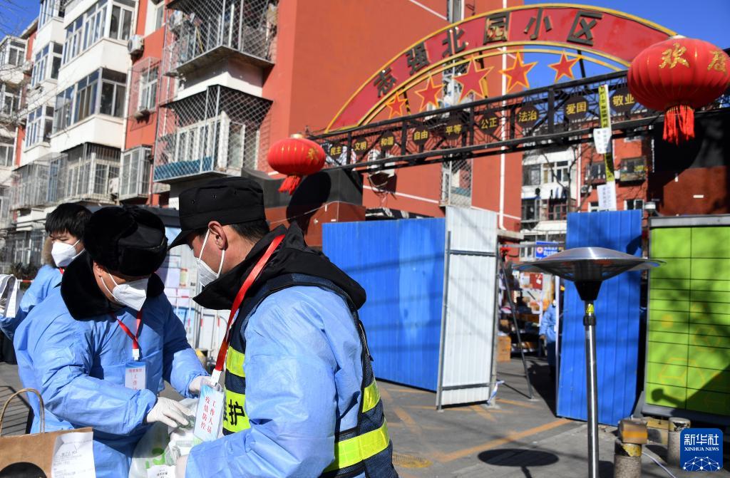 2月23日,在北京市海淀区北太平庄街道志强北园小区外,工作人员准备运送居民订购的物品。