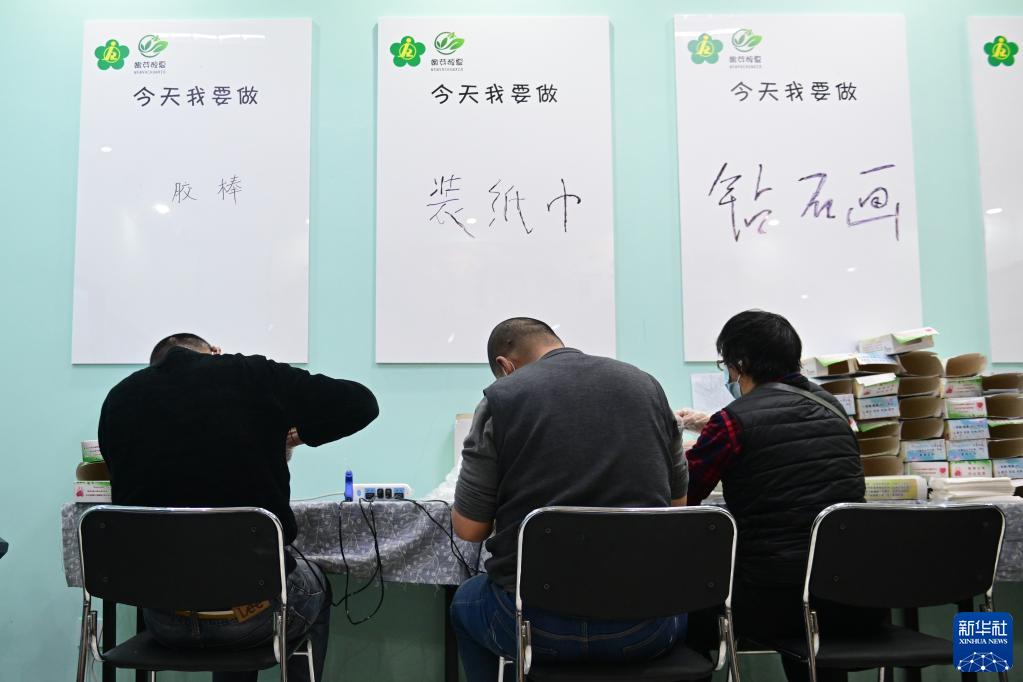 2月23日,在青海省西宁市城东区一家职业训练庇护工场,心智障碍人士进行技能训练。