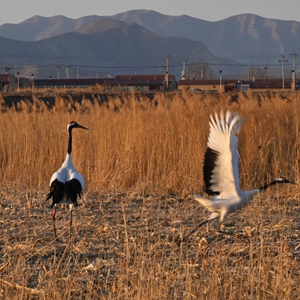 2月23日,两只国家一级保护动物丹顶鹤在山西省大同市广灵县壶流河湿地驻足栖息。新华社记者 马毅敏 摄