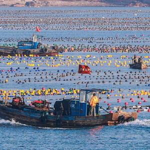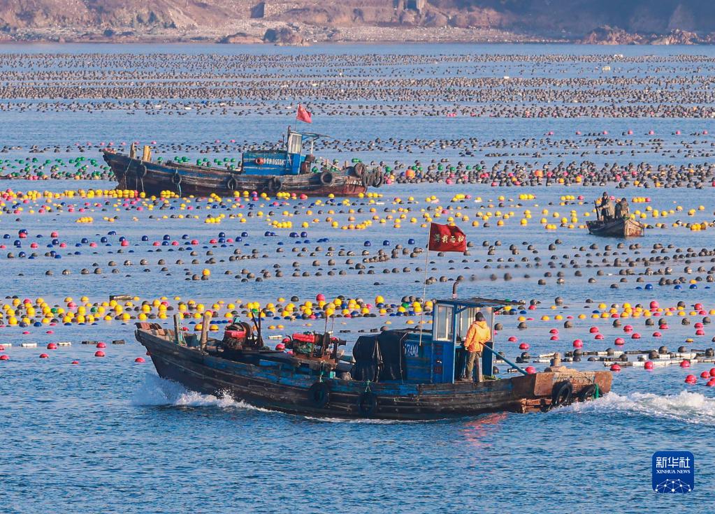 眼下正值春季海上生产的重要时期,在山东省荣成市,渔民们驾驶着渔船、舢舨在海面上穿梭,进行藻类管护、更换养殖浮漂等养殖作业,呈现出一派“海上春耕”生产繁忙景象。