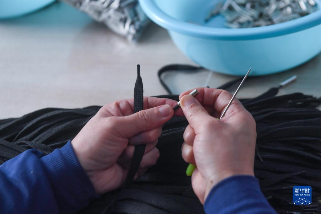 2月23日,在湖州市织里镇晟舍村残疾人之家,来自周边的残疾人(包括精神残疾、智力残疾和肢体残疾)制作童装辅料。完成订单后,他们可以获得相应报酬和补贴。