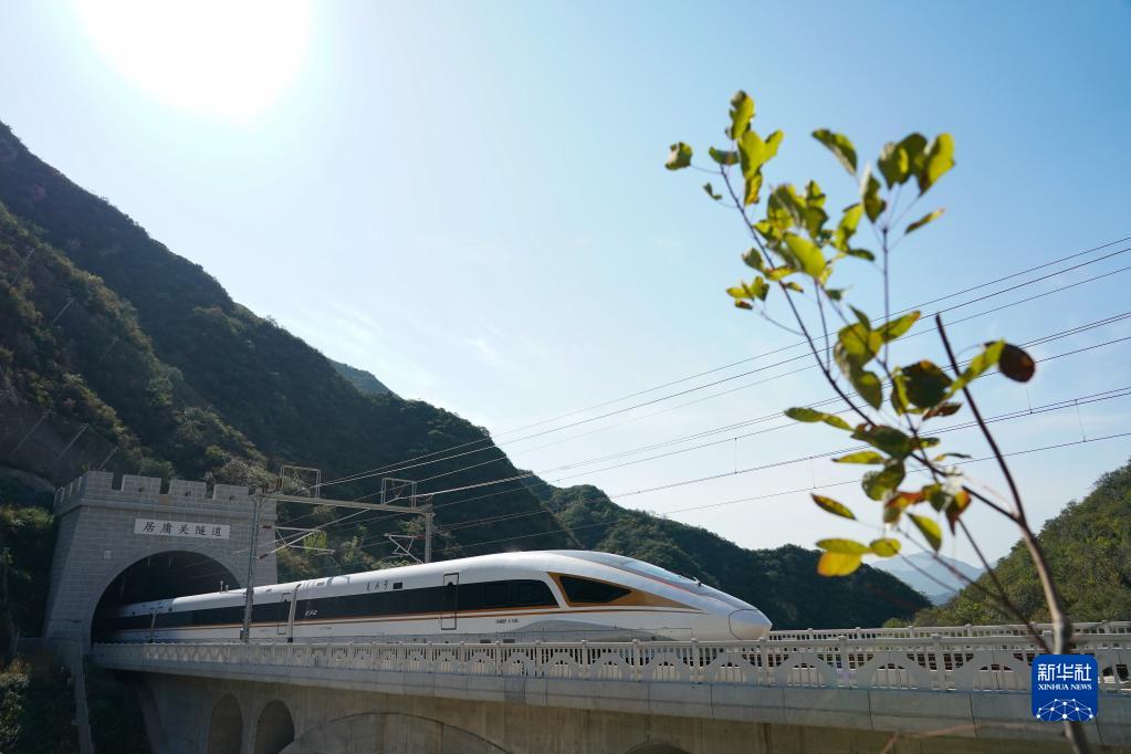 一列复兴号高铁列车穿过京张高铁居庸关隧道(2020年10月6日摄)。