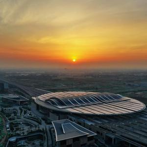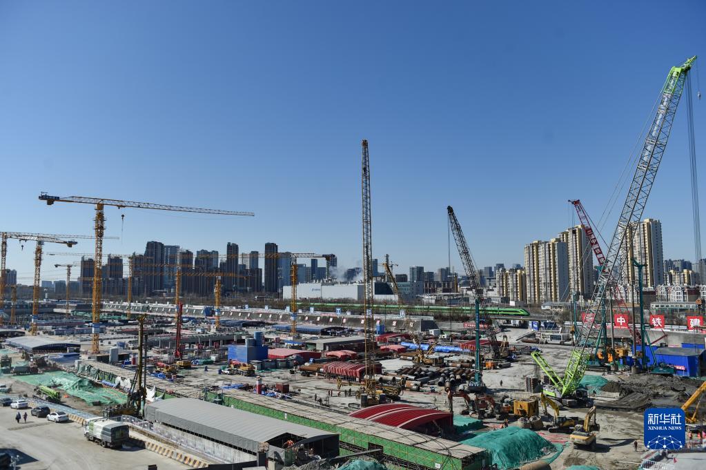 这是位于北京市通州区的北京城市副中心站综合交通枢纽工程建设现场(2022年2月23日摄)。