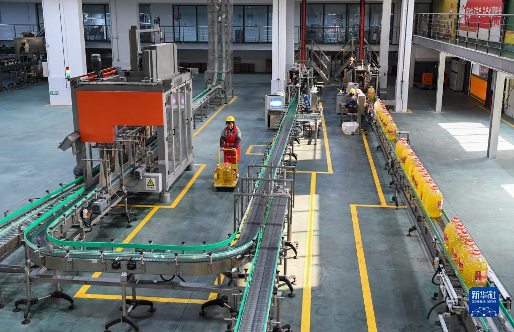 这是2月24日拍摄的红蜻蜓(重庆)植物油脂有限公司食用植物油包装车间作业现场。