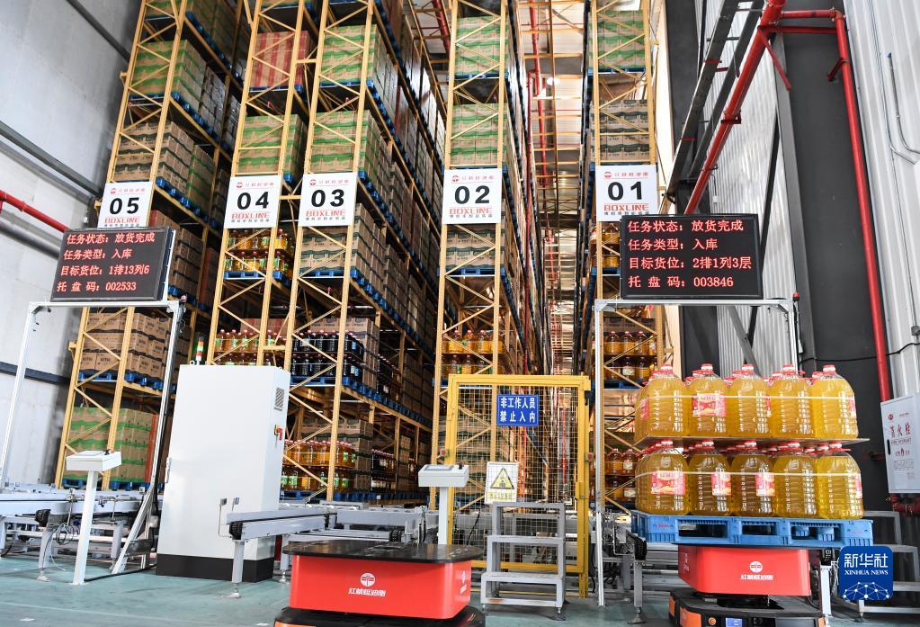 这是2月24日在红蜻蜓(重庆)植物油脂有限公司低温智能仓储配送中心拍摄的自动化作业现场。