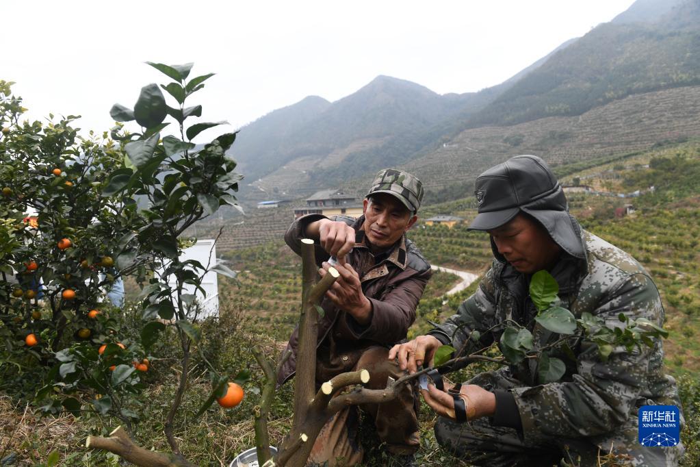 气温逐渐回升,广西灵川县果农抓紧农时对果树进行嫁接,为好收成打下基础。
