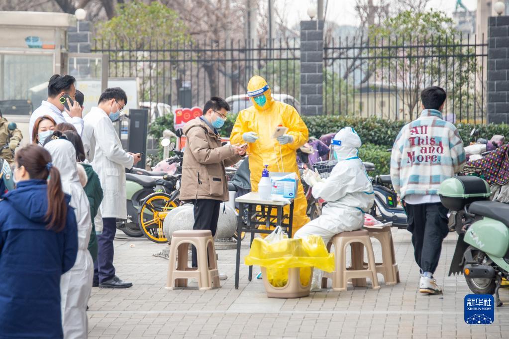 2月22日,市民在武汉市圆梦家园社区核酸检测点进行核酸检测。