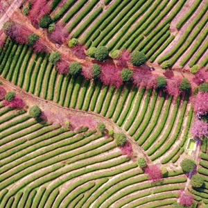 近日,位于福建武夷山的一处生态茶园里新茶吐绿、樱花盛开,红绿相间的早春美景吸引游人前来赏春踏青。