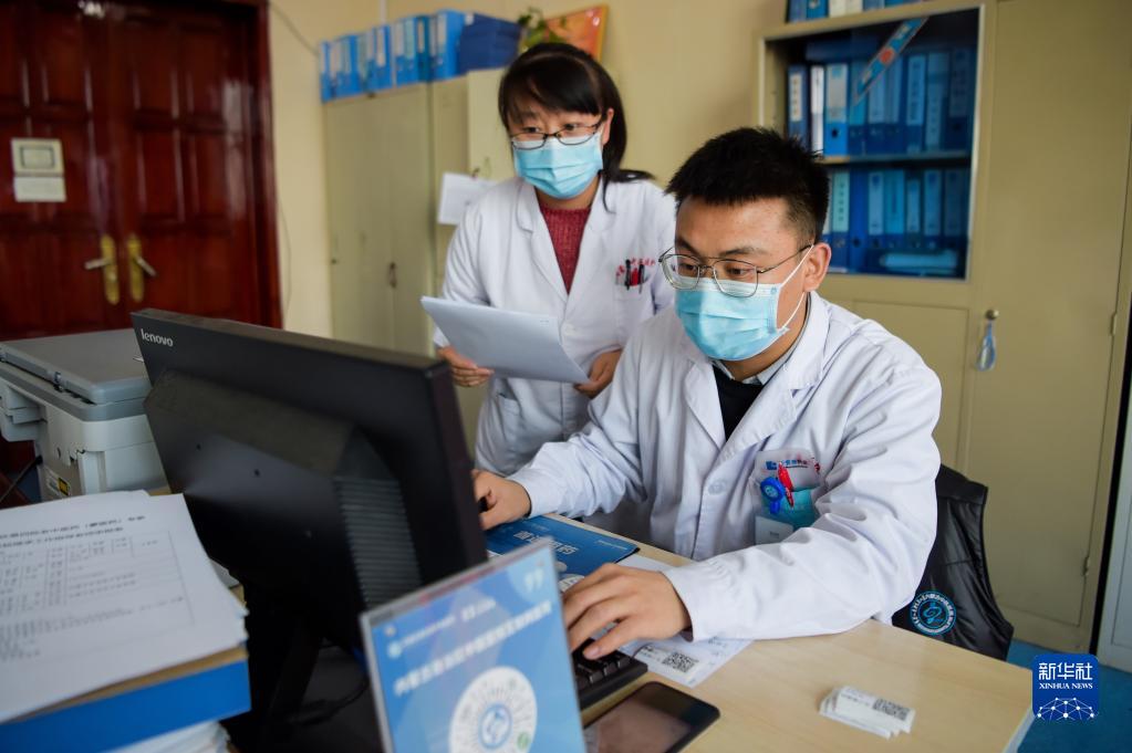 2月25日,内蒙古自治区中医医院医生在录入中药处方。