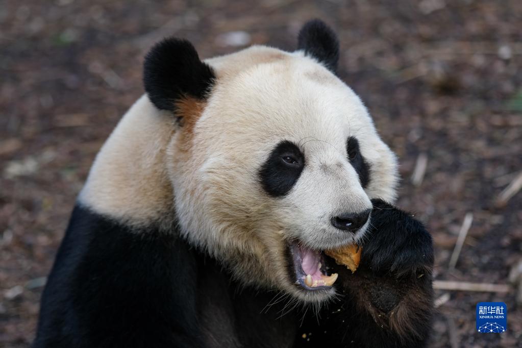 2月23日,在比利时布吕热莱特天堂动物园,大熊猫“天宝”在进食。
