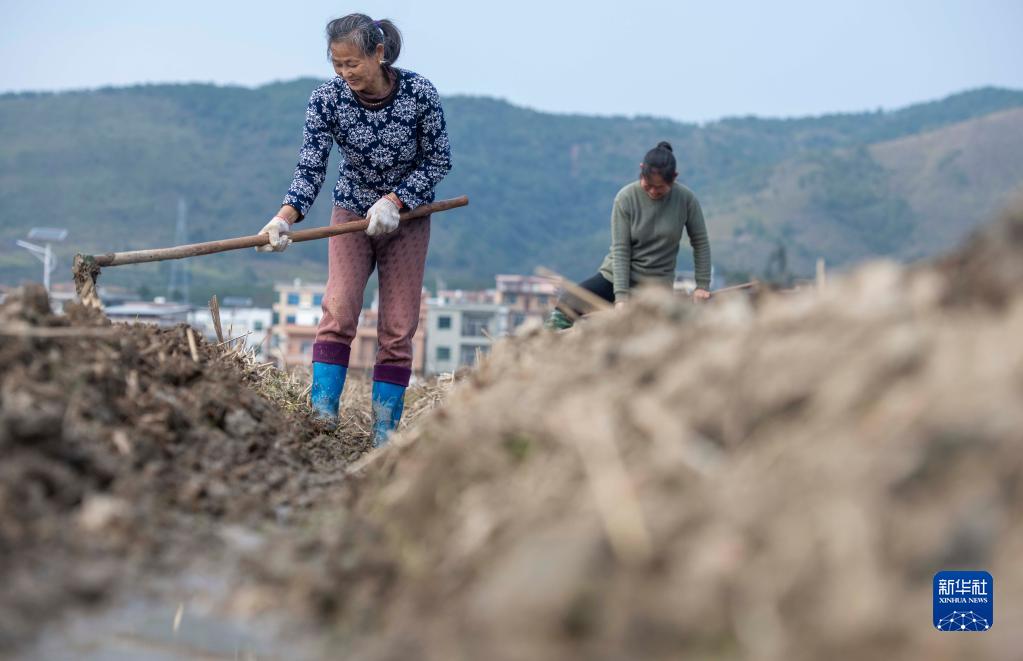 2月25日,在湖南省永州市道县四马桥镇陈杨村,村民在田间劳作。