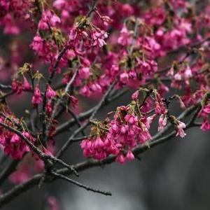 当下,广西南宁市石门森林公园里樱花盛放,吸引众多市民和游客前来观赏。