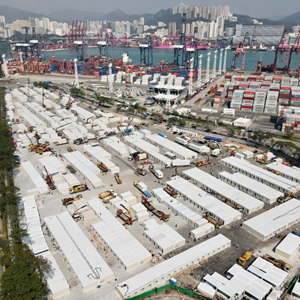 近日,中央援建香港的四处临时性社区隔离治疗设施(方舱医院)分别在香港青衣、前新田购物城、元朗潭尾和洪水桥开工建设,全部投入使用后预计将为香港提供14000—17000个隔离单位。按计划,青衣方舱医院将率先交付使用。