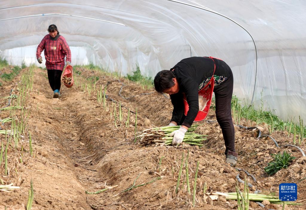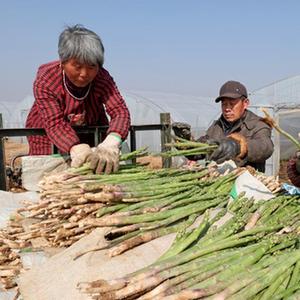 2月27日,全椒县六镇镇大张村村民在采收芦笋。
