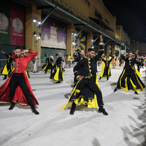 2月26日,表演者在巴西里约热内卢桑巴之城参加狂欢节假期庆祝活动。