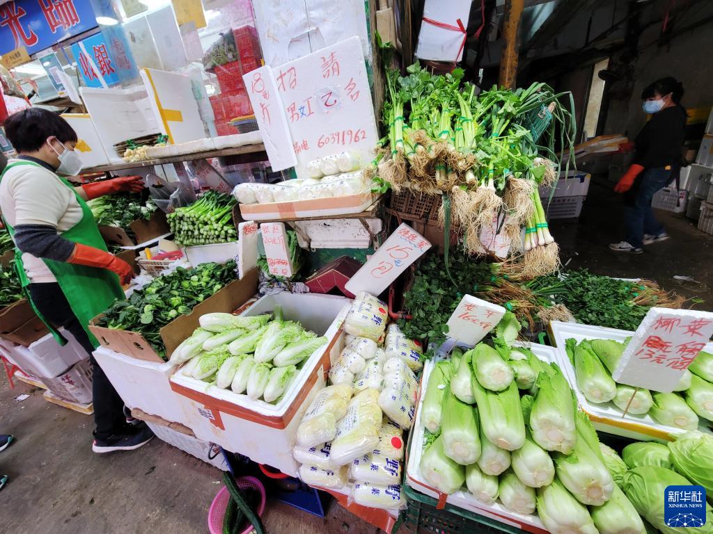 2月27日,在香港红磡,菜摊员工在整理蔬菜。