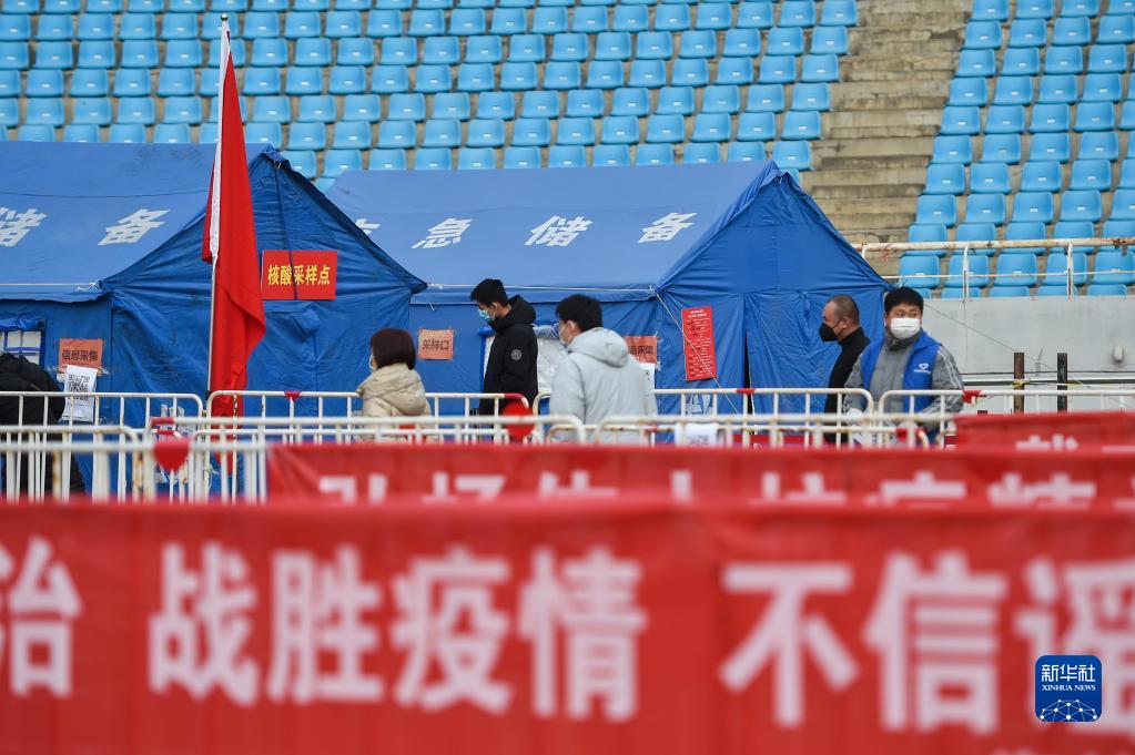 2月28日,市民在呼和浩特市体育场排队接受核酸检测采样。