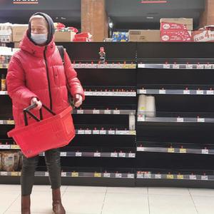 2月28日,市民在乌克兰利沃夫一处超市内采购。