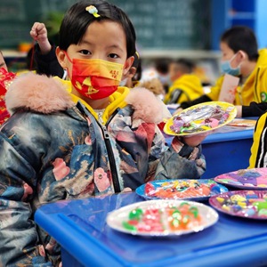 3月1日,在青海省西宁市城西区行知小学,孩子们展示自己的寒假作业。